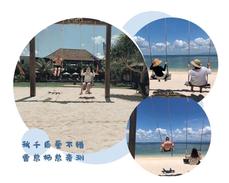夢(mèng)幻海灘的海水恐怕是巴厘島最清澈明凈的,海風(fēng)如酒,海天蒼蒼,如鏡面的天空和海水。在海面上劃行“獨(dú)木舟”,宛如漂浮在澄澈的天空之境。而海灘上的秋千,面朝大海,大家爭(zhēng)相坐在秋千上拍照,經(jīng)過曹總和楊總親自檢驗(yàn),證明雖然是木質(zhì)秋千,但是質(zhì)量誠不欺我。