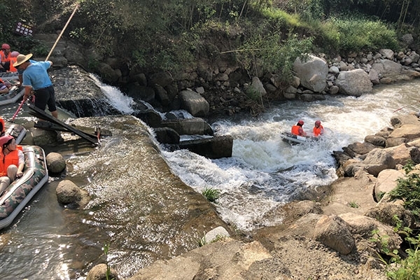 之后迎來(lái)重頭戲——漂流。在安全員的介紹培訓(xùn)后,男女一組坐上了氣墊筏,在等待開(kāi)閘漂流的時(shí)間,拋棄了身份,性別,打起了水仗,不得不說(shuō)這是加深同事感情的不二法門(mén)。300米的落差,跟隨水流,一路向下,打著水仗,嬉嬉鬧鬧,即便全身濕透,仍然玩的不亦樂(lè)乎。