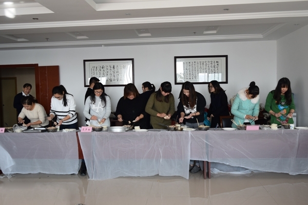 早上9點(diǎn)全體員工早早地開始了活動(dòng)準(zhǔn)備工作,大家一起動(dòng)手,有的洗菜、有的切菜、有的拌餡,有的布置場(chǎng)地,忙得不亦樂乎,好像一家人一樣其樂融融。一切準(zhǔn)備就緒后活動(dòng)就正式開始了。