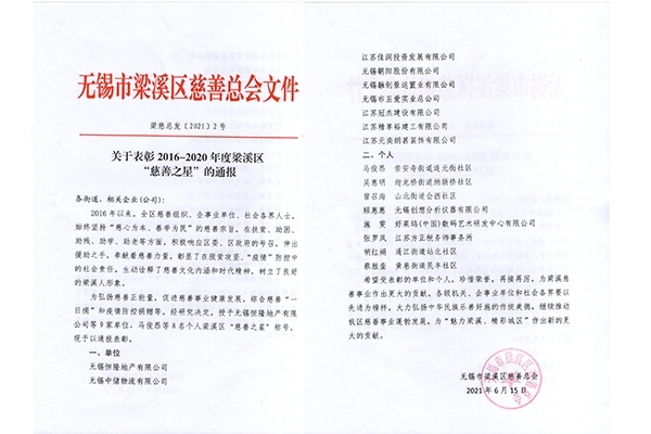此次無錫市梁溪區(qū)慈善總會為表彰2016至2020年間,在扶貧、助困、助殘、助學(xué)、助老、“疫情”防控中做出貢獻(xiàn)的單位及個人授予梁溪區(qū)“慈善之星”稱號,以通報(bào)表彰。創(chuàng)想儀器顧惠惠女士有幸得此殊榮,作為一名企業(yè)領(lǐng)導(dǎo)人,在“疫情”防控中奉獻(xiàn)自己的力量是應(yīng)盡的責(zé)任。我們將珍惜榮譽(yù),再接再厲,為梁溪慈善事業(yè)作出更大的貢獻(xiàn)。