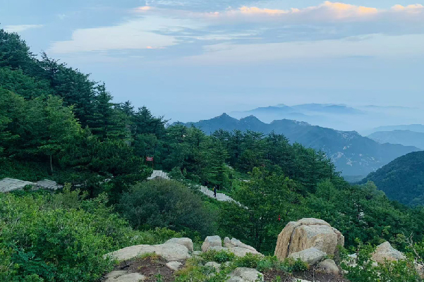 將近傍晚時(shí)分,天色似被一只無(wú)形的大手,緩緩地揉進(jìn)了灰暗的色調(diào)。山間的風(fēng),也裹挾著絲絲涼意,穿梭于林葉之間,我們一行人,于這漸暗的天色中艱難匯合。每個(gè)人的臉上都帶著攀登后的疲憊,卻又難掩眼中那股興奮與期待交織的光芒。稍作整頓,便又毅然決然地繼續(xù)朝著那高聳入云的玉皇頂上行。