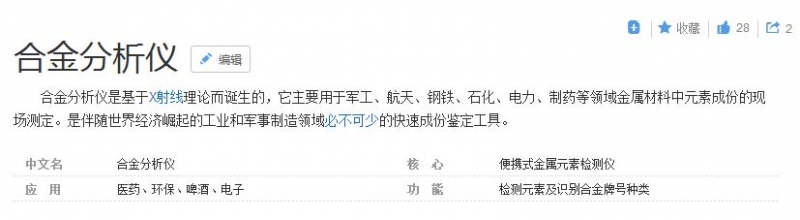百度百科關(guān)于合金分析儀的解釋